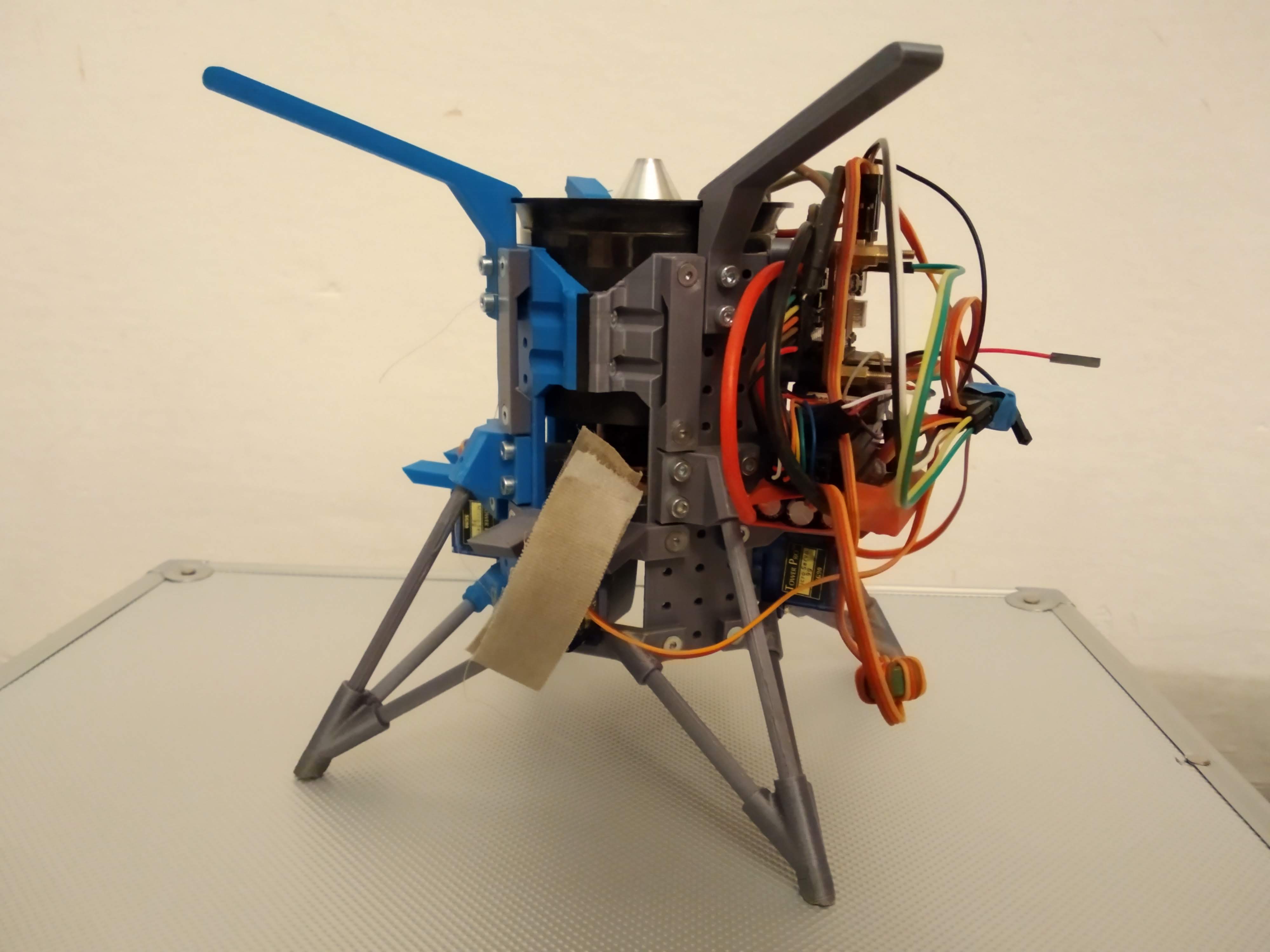The goal was simple: build a small flying device that could demonstrate the principles of propulsive landing. While using existing quadcopters might have seemed like an easy solution, they don't actually reflect how rockets work. Quadcopters control their flight by varying the speed of different propellers, but rockets need to use different methods - thrust vectoring, control surfaces, or similar techniques. This meant starting from scratch with a custom design.